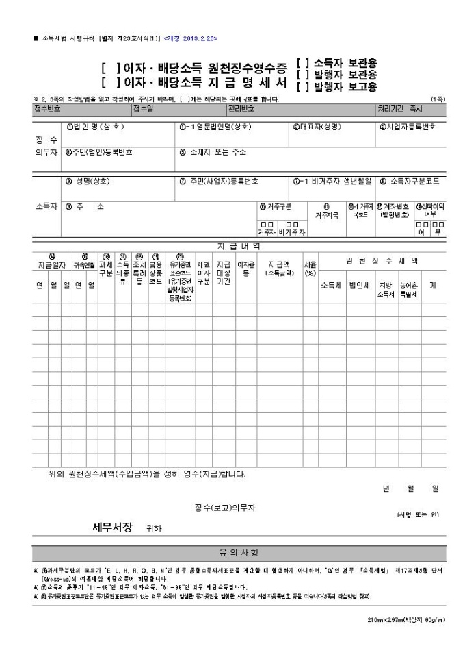 [2014년 연말정산]이자배당소득원천징수영수증,이자배당소득지급명세서