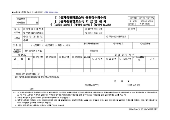 9,000원/월[2014년 연말정산]유가증권양도소득 원천징수영수증,유가증권양도소득 지급명세서(2014.3.14 개정)입니다.※ 자료제공 : 국가법령정보센터
