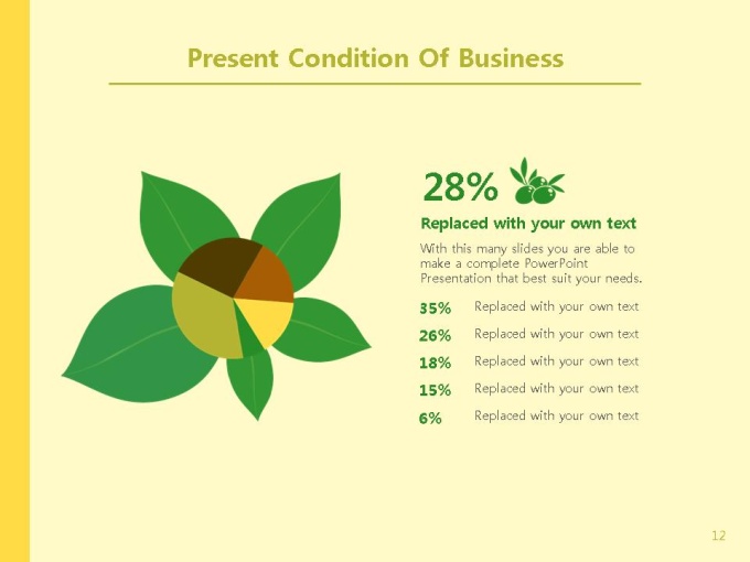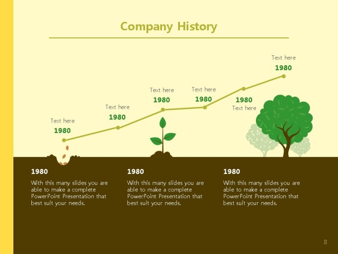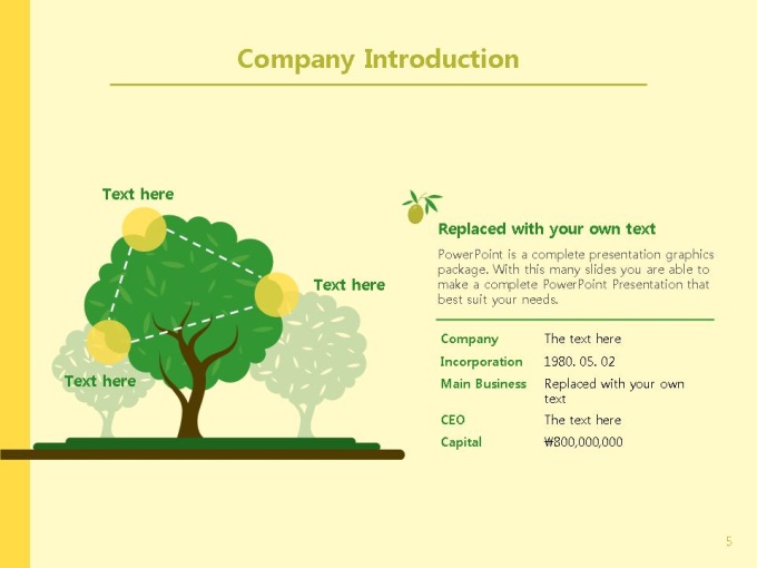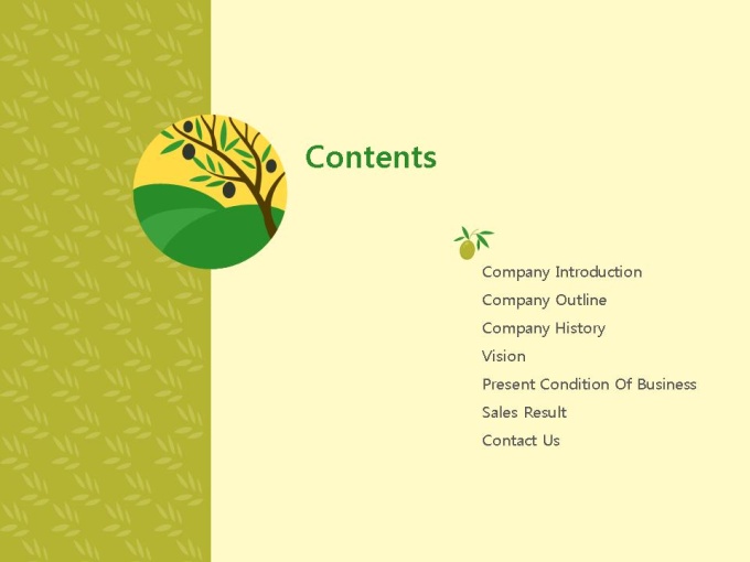 친환경적인 건설업, 건축/부동산 업계에 추천하는 인포그래픽형 회사소개서 PPT입니다. 그린컬러와 푸른 나무의 이미지는 내추럴하고 자연친화적인 기업의 이미지와 비전을 돋보이게 합니다. 이에 내용의 핵심을 보다 편리하게 전달 할 수 있는 인포그래픽형 디자인을 함께 구성하였습니다. 회사소개서 표준목차에 맞춰 다이어그램, 표, 그래프로 구성되었으며, 모든 슬라이드에 구성된 도형 및 그래프는 편집이 용이하도록 제작되었습니다.