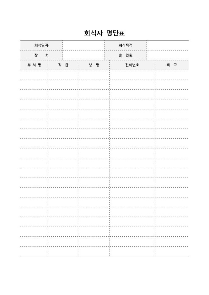 회식자 명단표