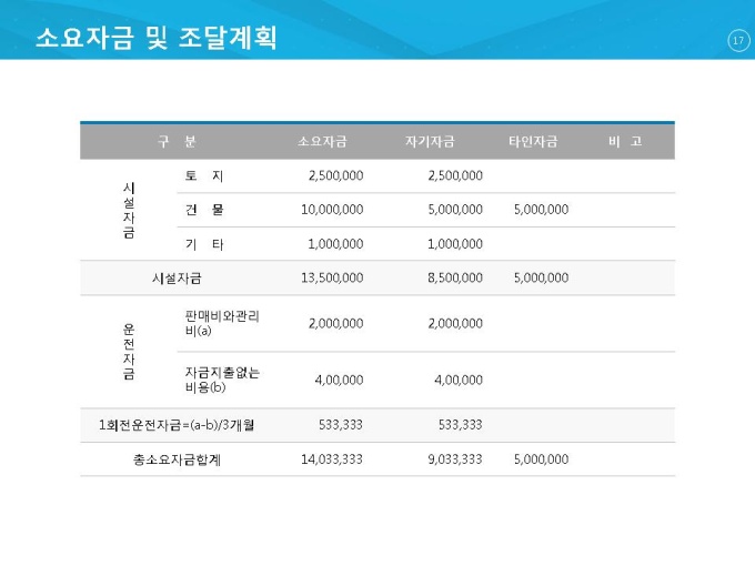 - 소요자금 및 조달계획
