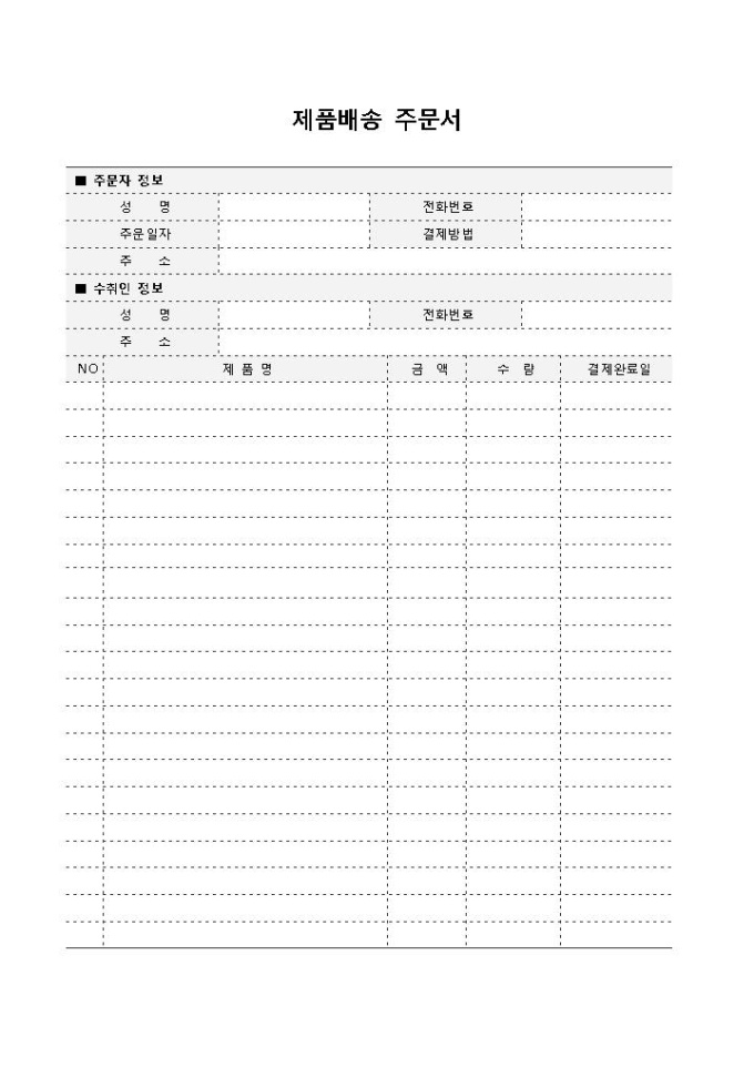 제품배송 주문서