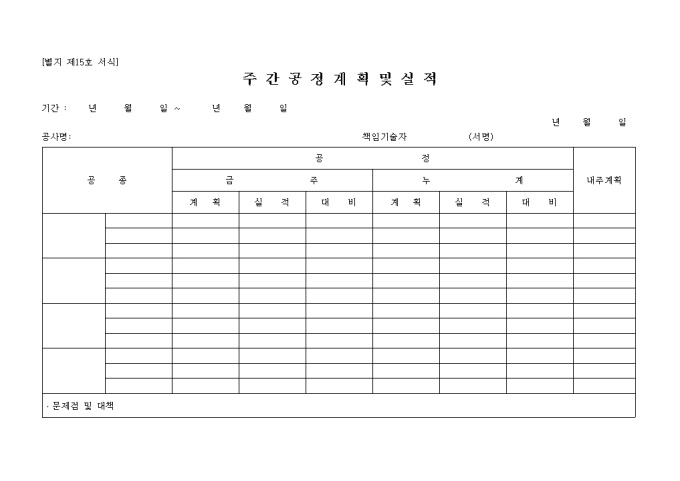 전력기술관리법시행규칙15서식(95.--.--)-주간공정계획및실적 입니다.