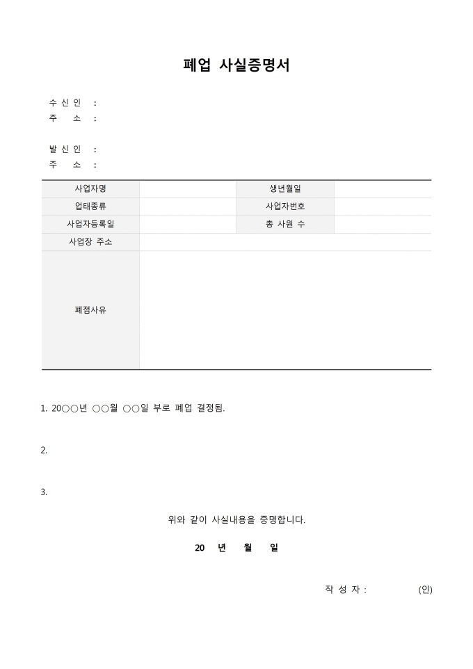 9,000원/월폐업 사실증명서입니다. 폐업 사실증명 시 작성하는문서입니다.
