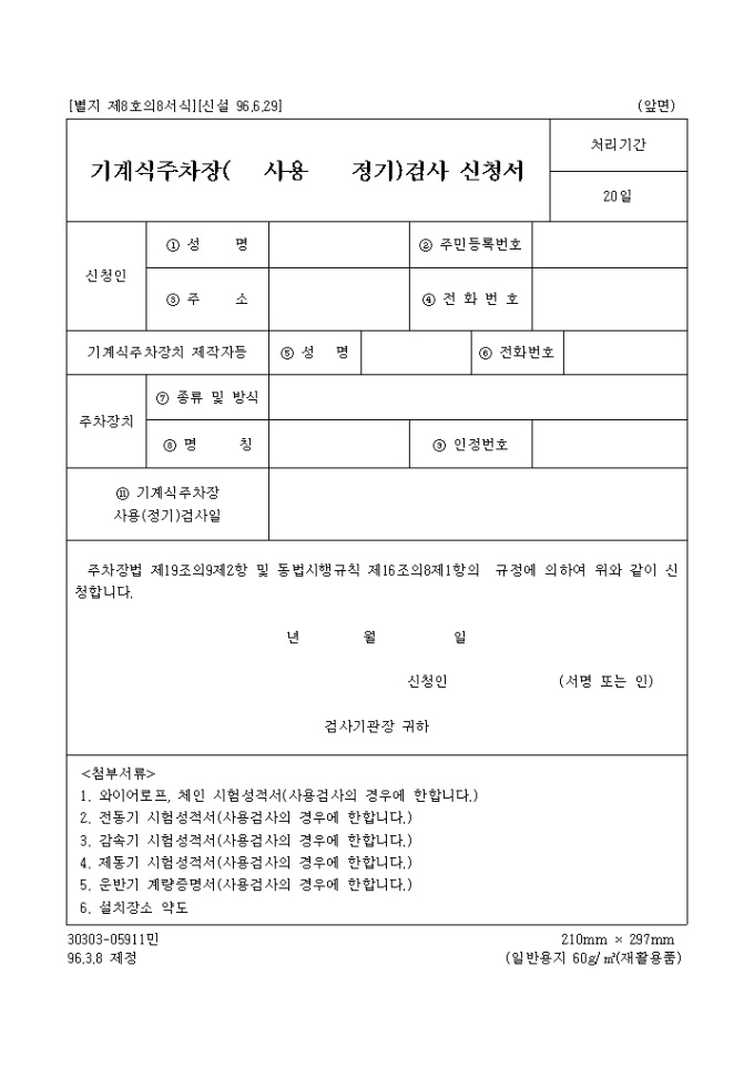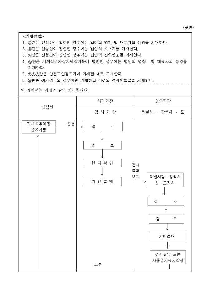 기계식주차장(사용, 정기)검사신청서