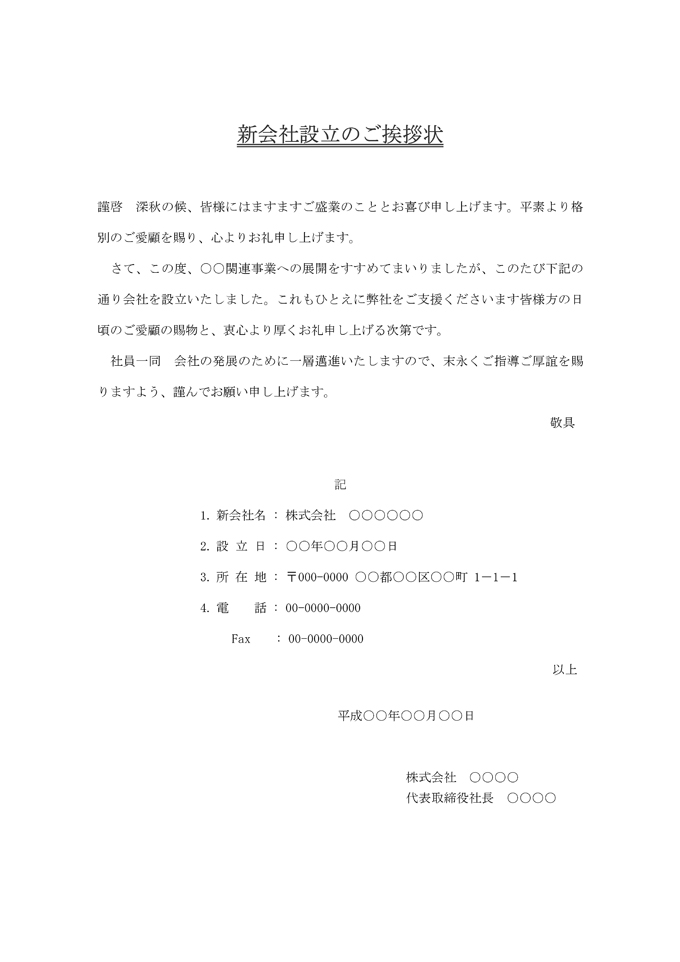 신회사 설립의 인사장1(일본어)입니다. 신회사 설립의 인사장1(일본어) 양식이 일본어로 작성된 문서양식입니다. 회사서식, 사외문서 분야에 활용할 수 있습니다. 신회사 설립의 인사장1(일본어) 양식