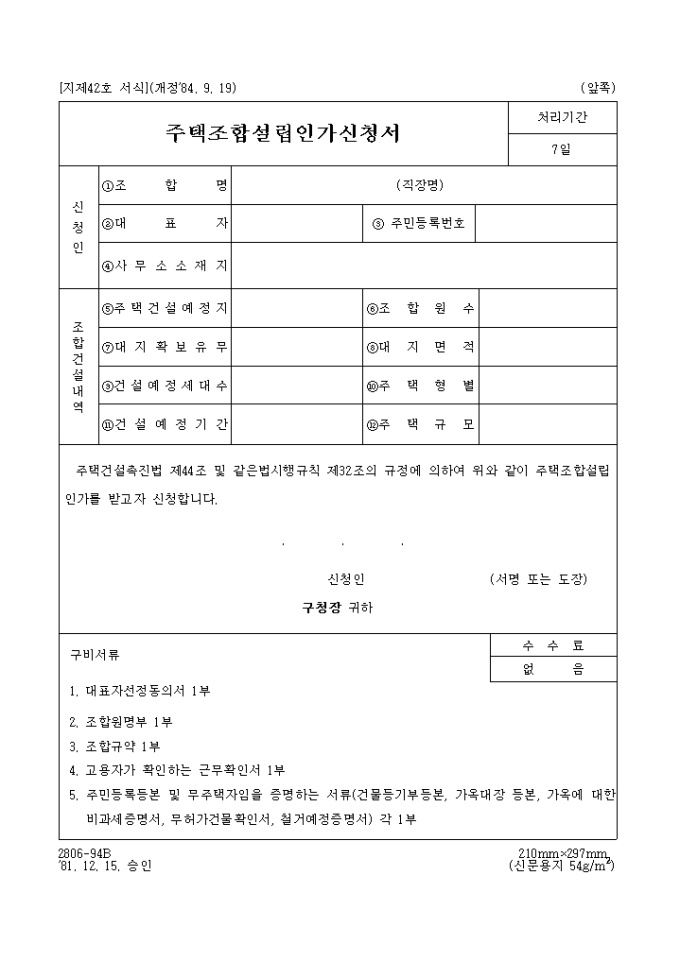 주택조합 설립인가 신청서
