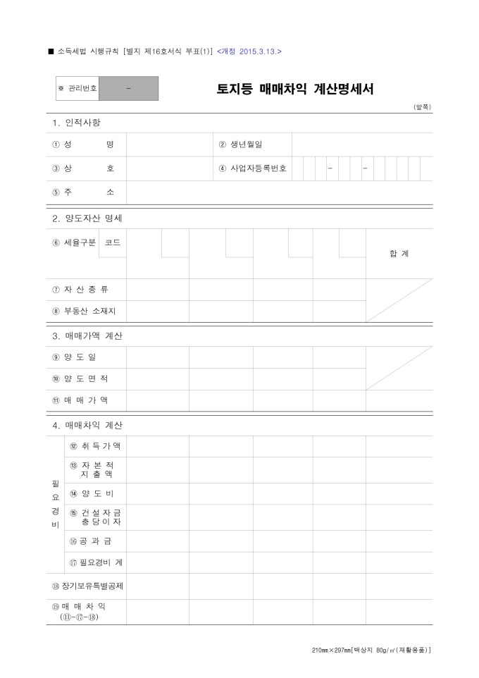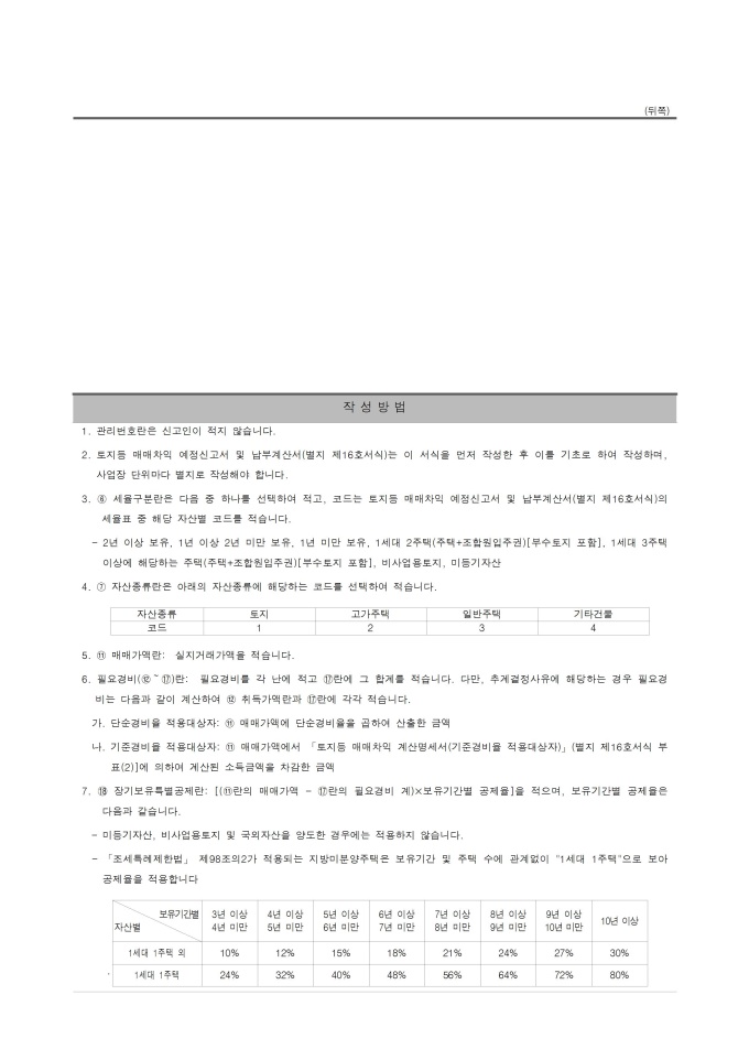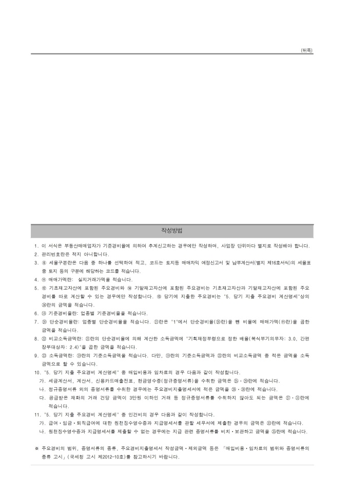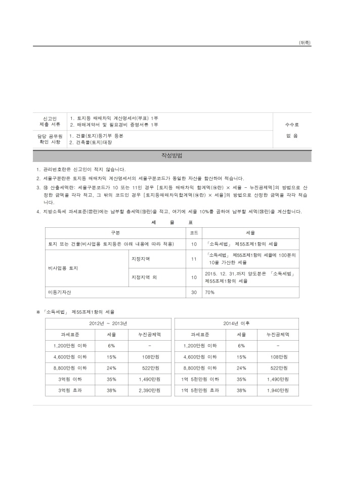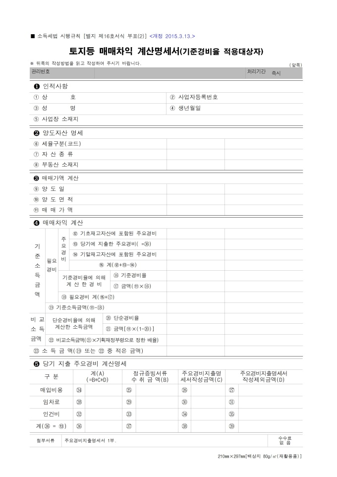 [2015년 연말정산] 토지등 매매차익 예정신고서 및 납부계산서¸ 토지등 매매차익 계산명세서¸ 토지등 매매차익 계산명세서(기준경비율 적용대상자)