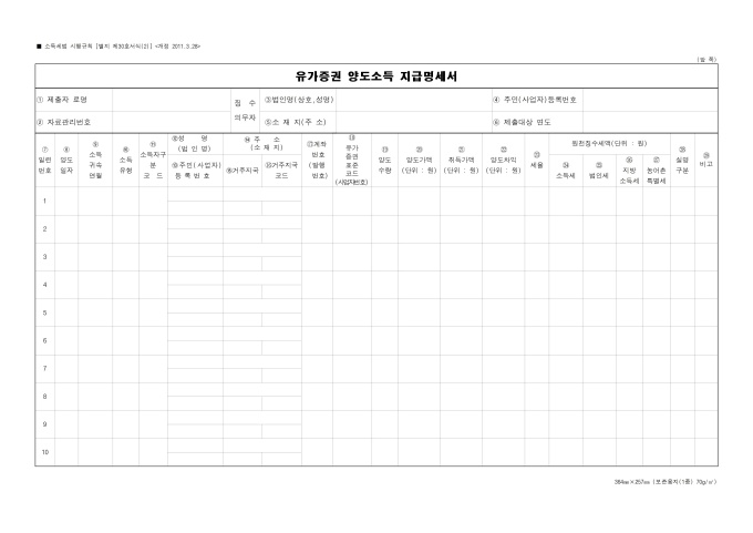 이자ㆍ배당소득지급명세서¸ 유가증권 양도소득 지급명세서입니다. 소득세법 시행규칙 별지서식