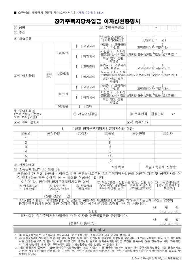 [2015년 연말정산] 장기주택저당차입금 이자상환증명서