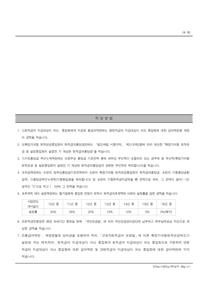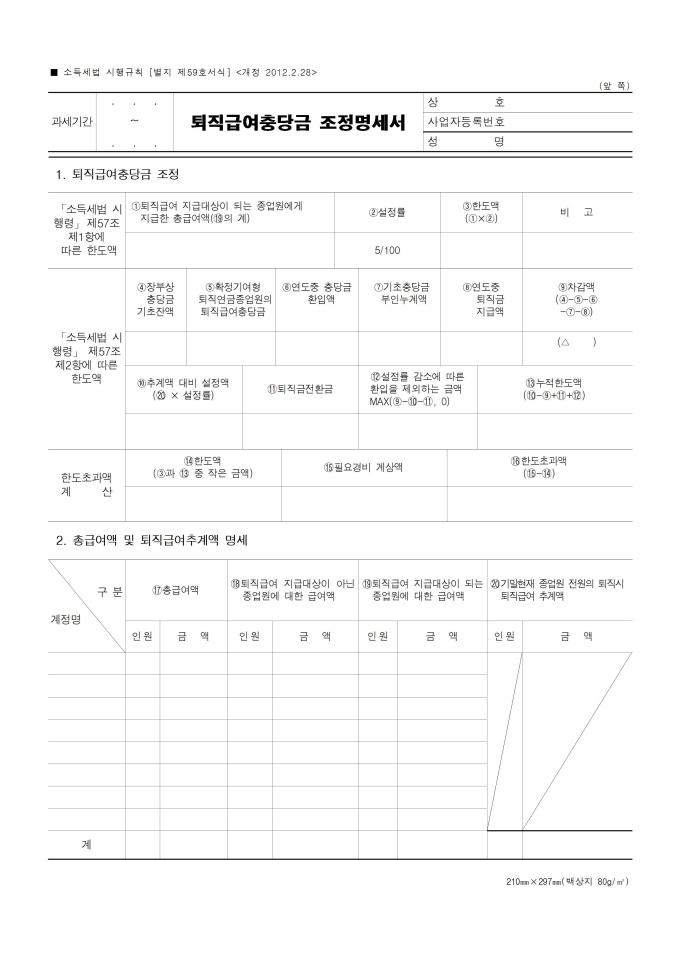 9,000원/월퇴직급여충당금 조정명세서입니다. 소득세법 시행규칙 별지서식