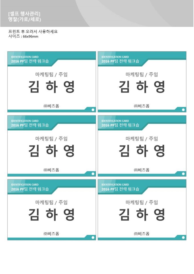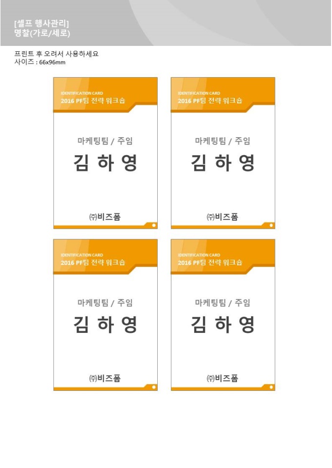 업무 관련 워크숍 진행 시 사용하는 [업무] 워크숍 명찰(가로_세로)입니다.