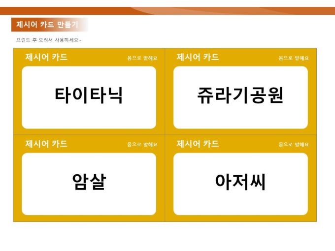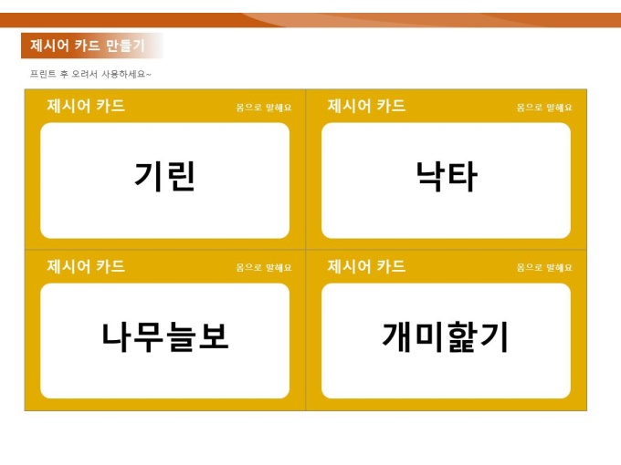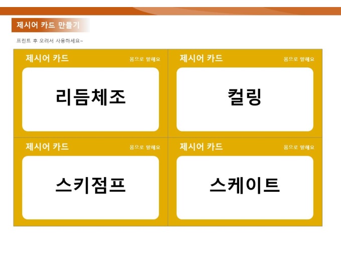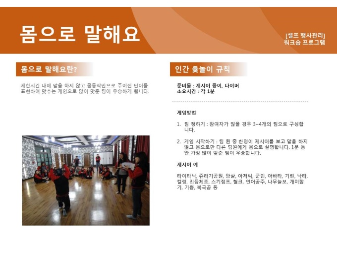 스키장 워크숍 진행 시 사용하는 [스키장] 워크숍 실내프로그램(몸으로말해요)입니다.