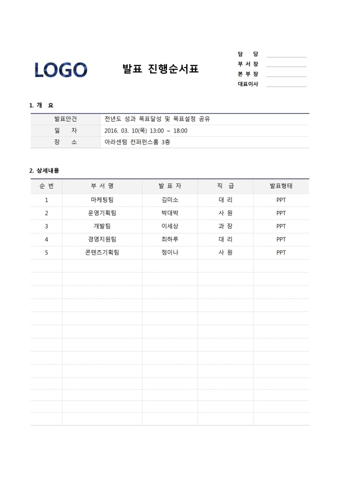 9,000원/월성과보고 진행 시 사용하는 [성과보고] 발표 진행순서표입니다.