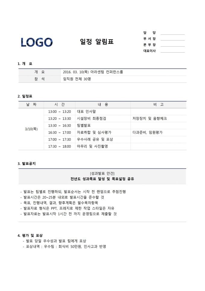 성과보고 진행 시 사용하는 [성과보고] 일정 알림표입니다.