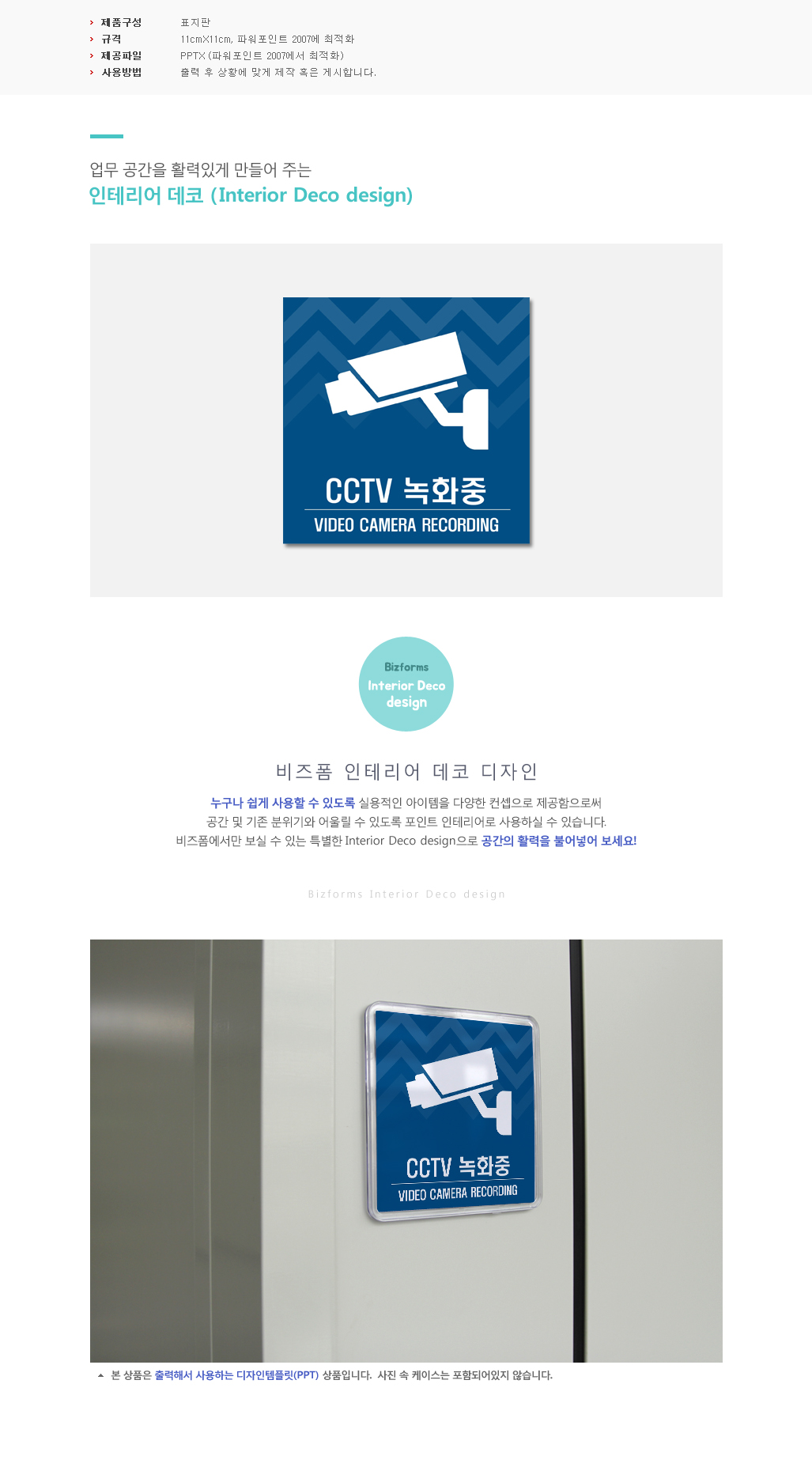 표지판_CCTV녹화중(파란색 패턴, 인테리어 디자인)입니다. 출력한 후 상황에 맞게 제작 혹은 기세합니다.
