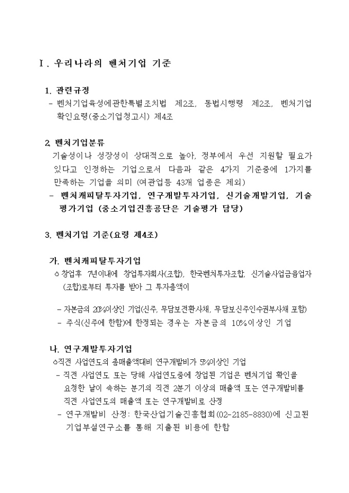 Ⅰ. 우리나라의 벤처기업 기준