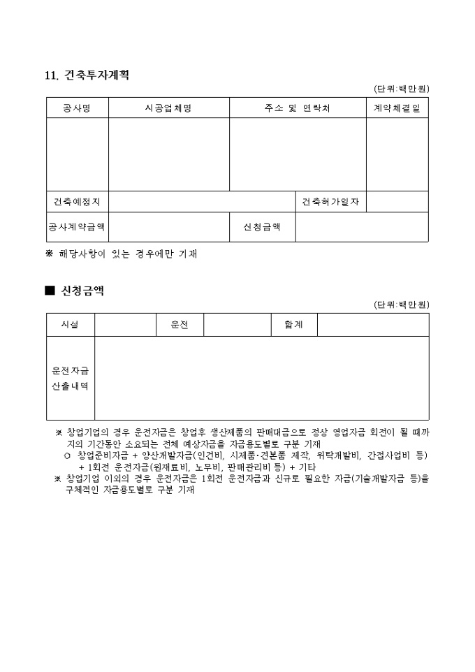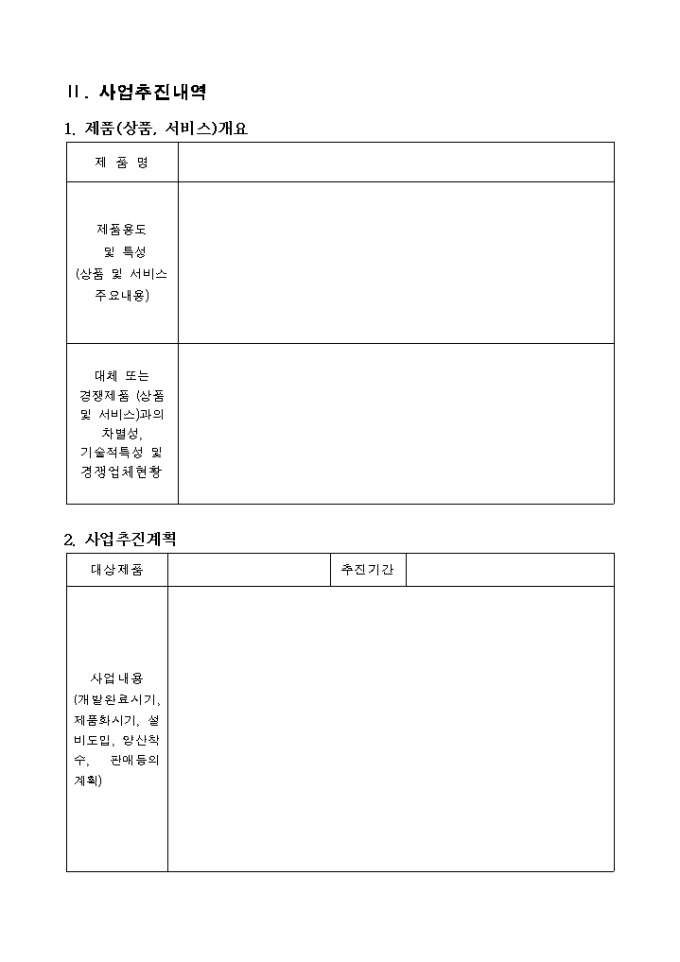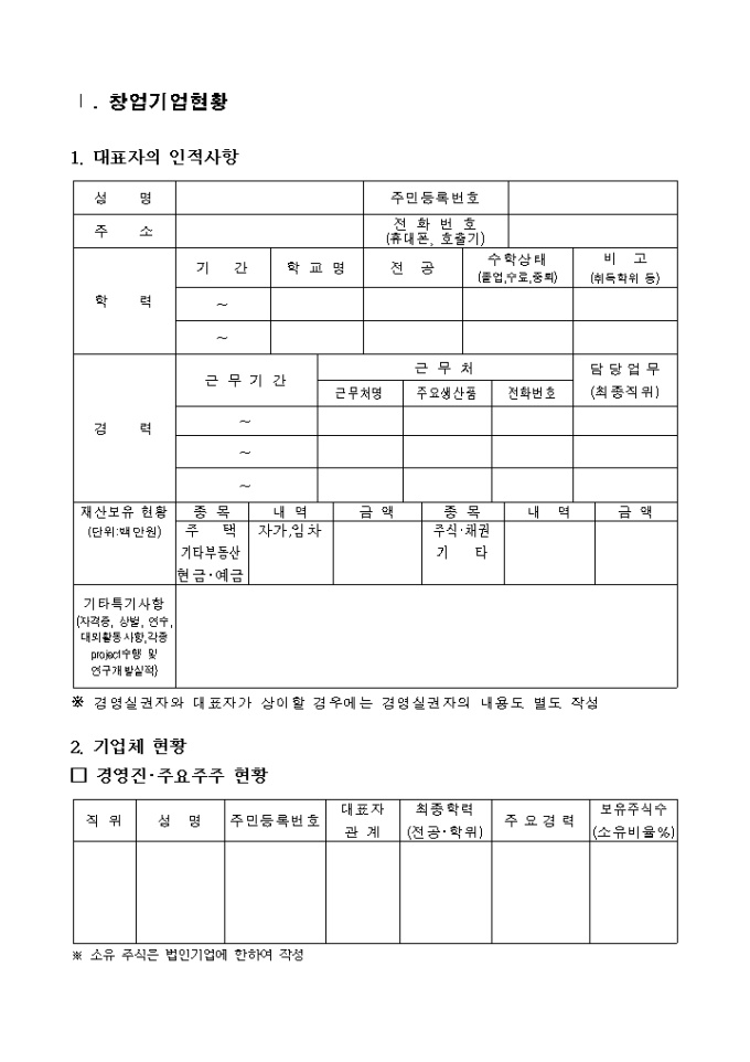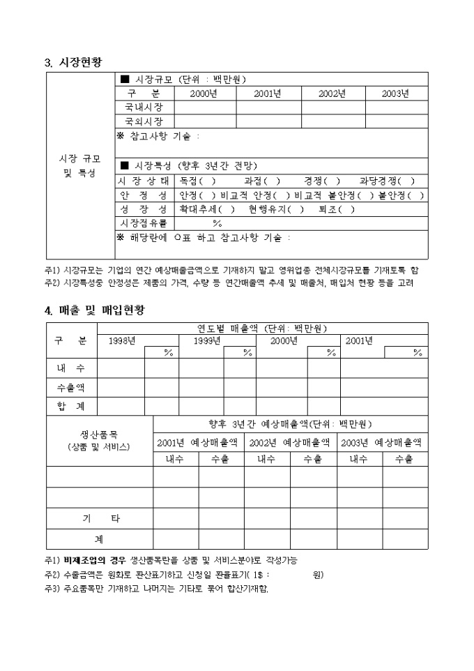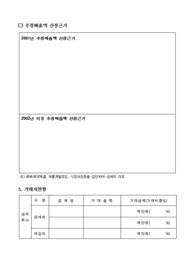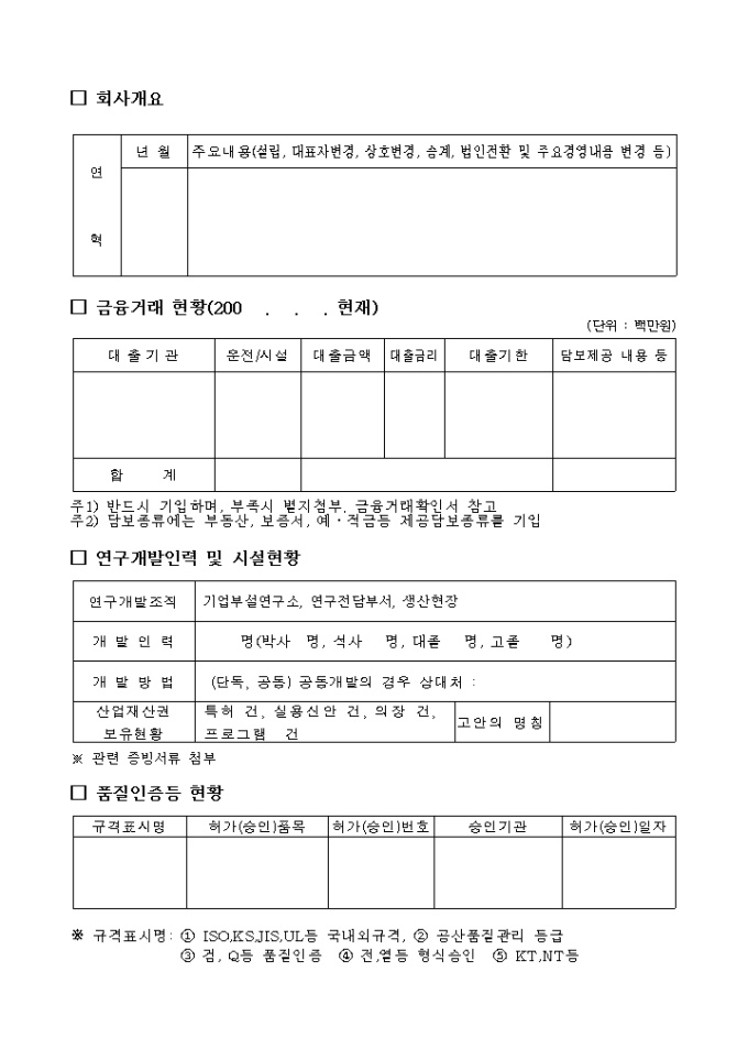 9,000원/월중소 벤처기업 창업 및 육성자금 지원을 신청시 사용하는 양식으로 ①창업 및 육성자금 ②공장경락자금 ③아파트형공장 및 벤처기업집적시설 입주자금 ④벤처기업지원자금 ⑤북한진출기업지원자금 신청등에 사용합니다.