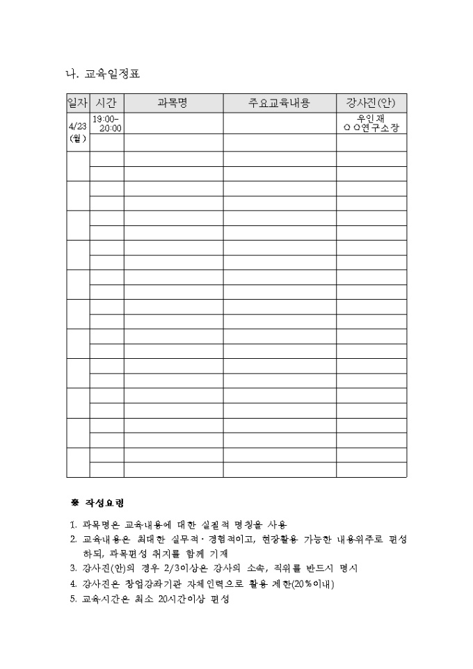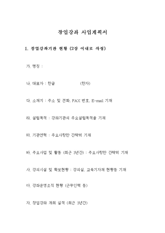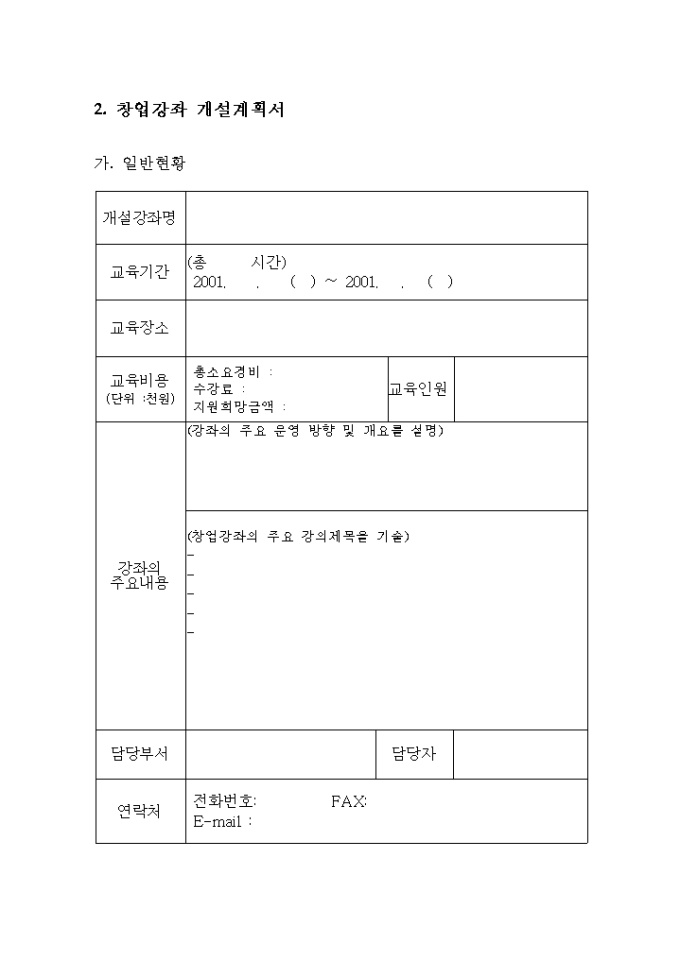 2. 창업강좌 개설계획서