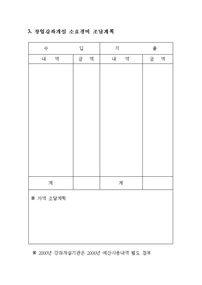 3. 창업강좌개설 소요경비 조달계획