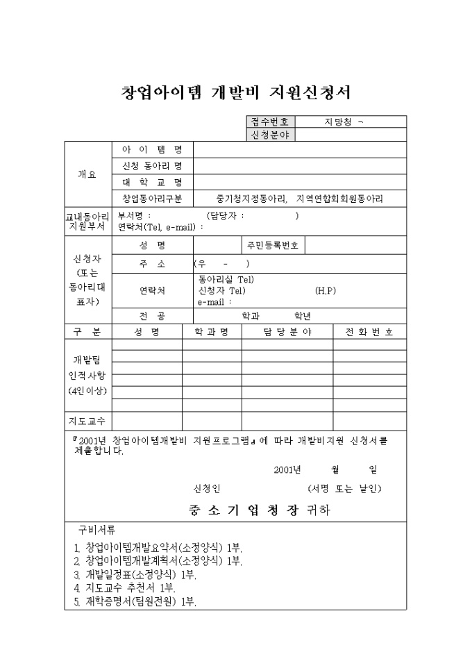 9,000원/월창업아이템개발비 지원프로그램에 따른 개발비지원 신청서 양식입니다.
