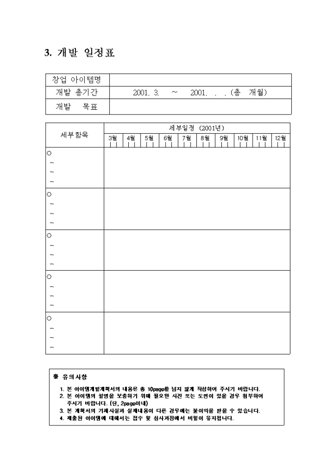 3. 개발일정표(소정양식)