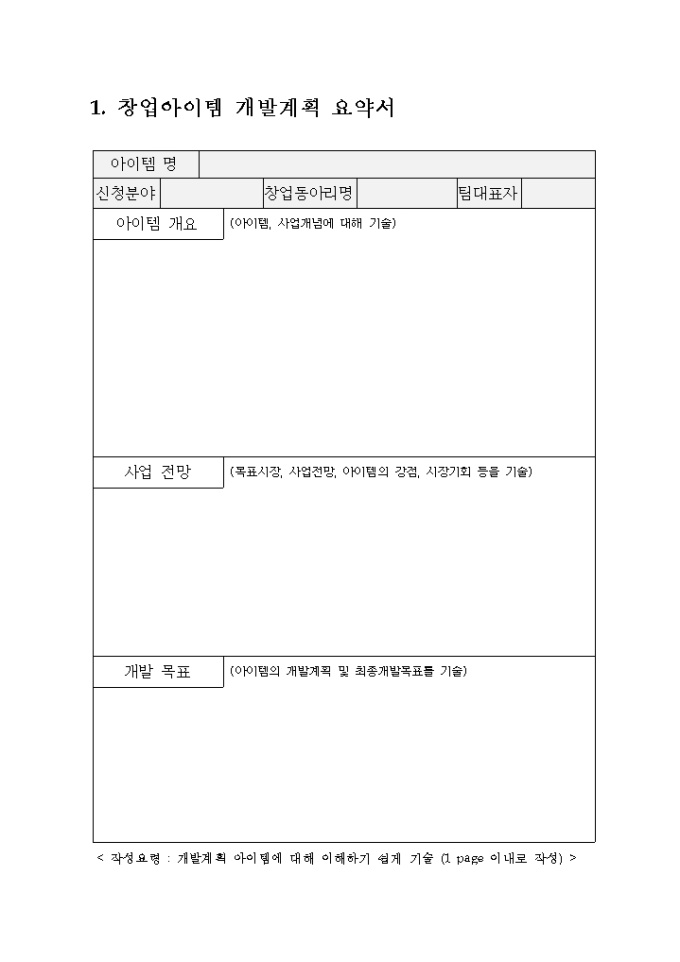 1. 창업아이템개발요약서(소정양식)