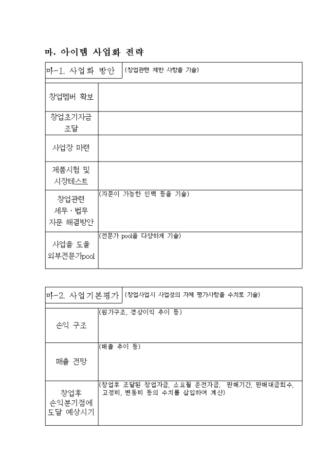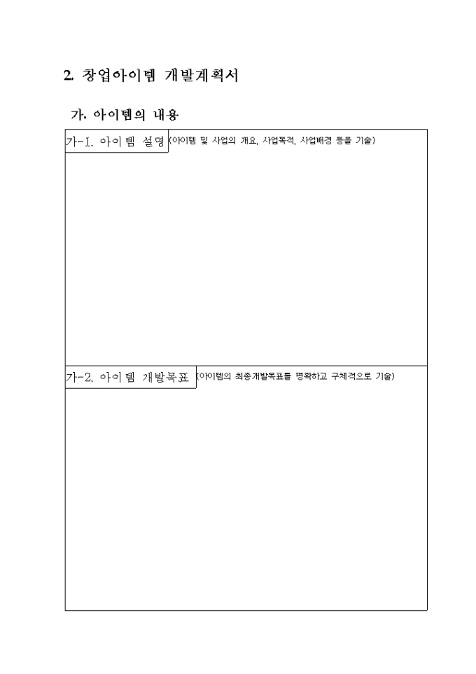 2. 창업아이템개발계획서(소정양식)