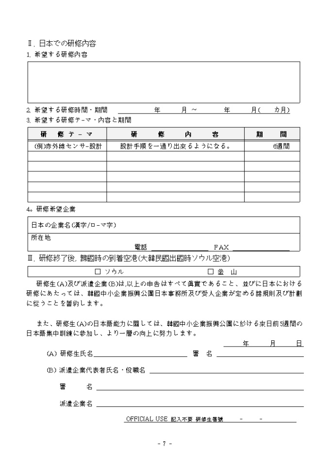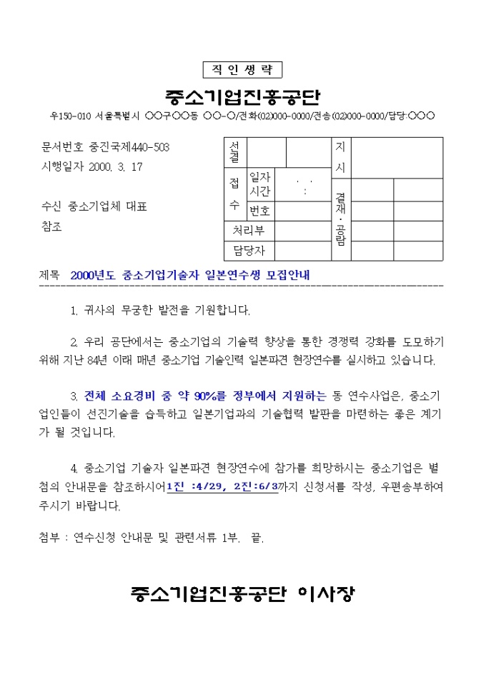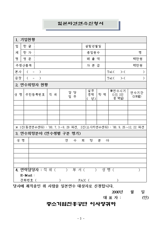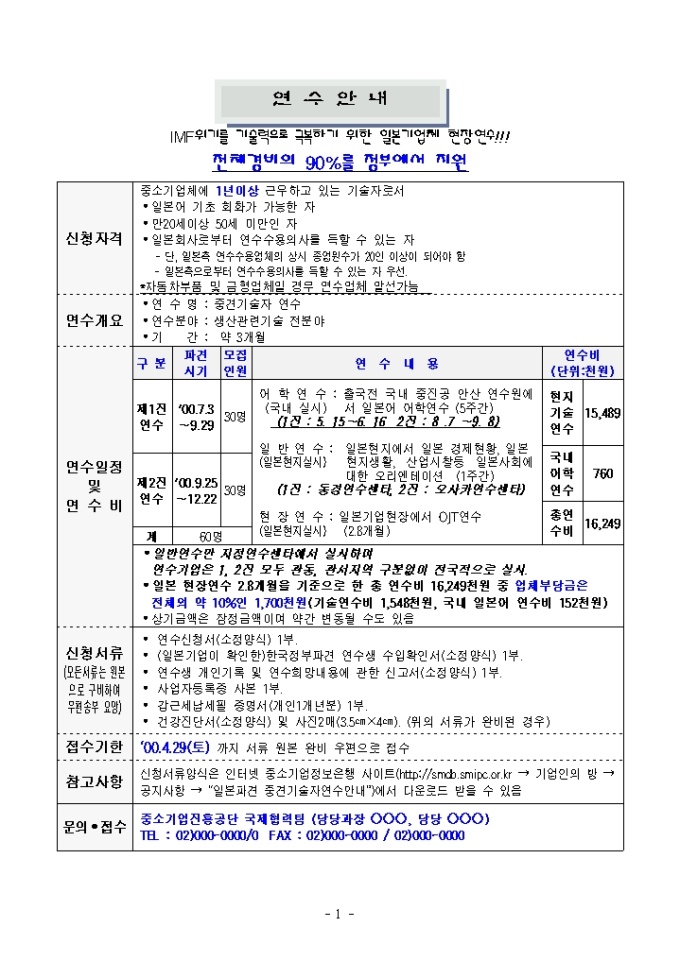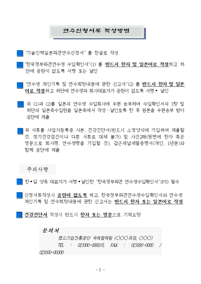 9,000원/월국제협력-중견기술자연수안내문 양식입니다. 연수안내, 연수신청서류 작성방법, 일본파견연수신청서등으로 구성되어 있고 한국정부파견연수생수입확인서, 건강진단서등이 첨부되어 있습니다.