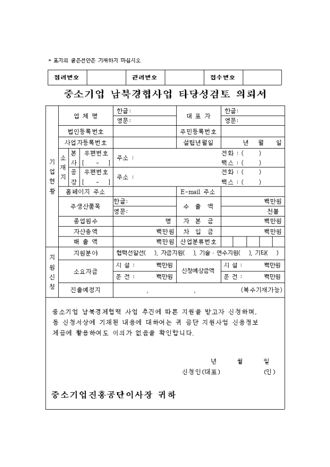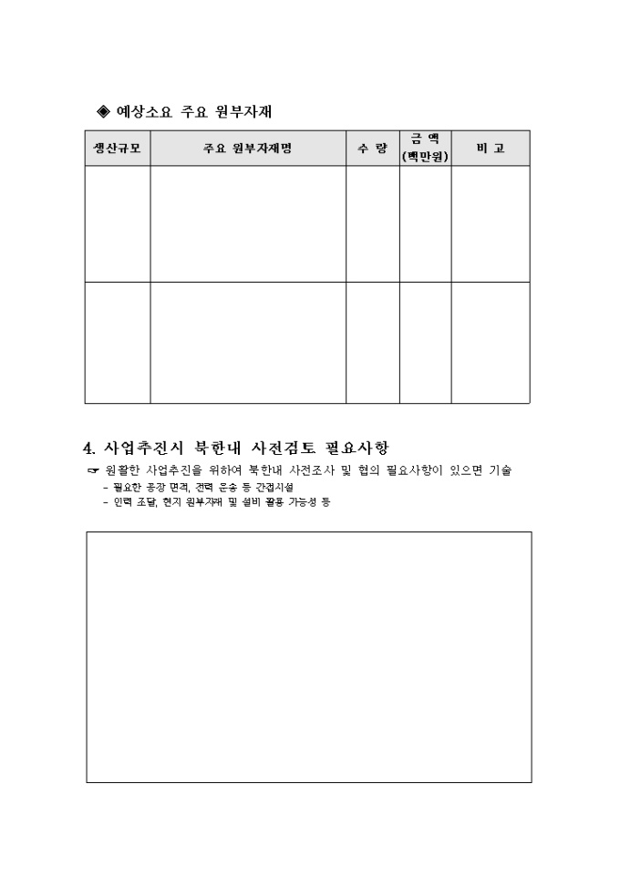 자금, 입지지원사업-남북경협 타당성 검토의뢰서