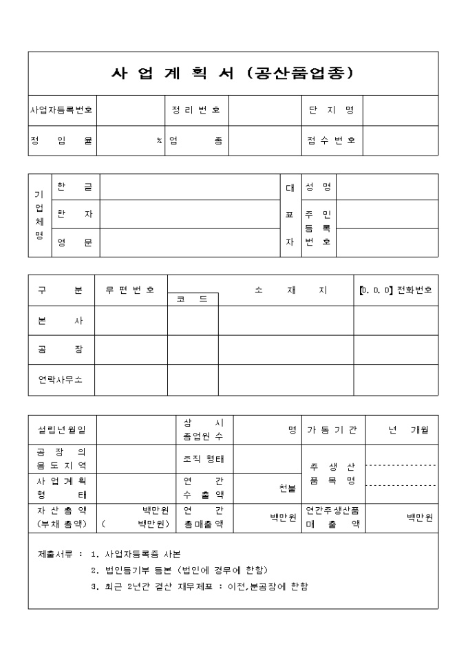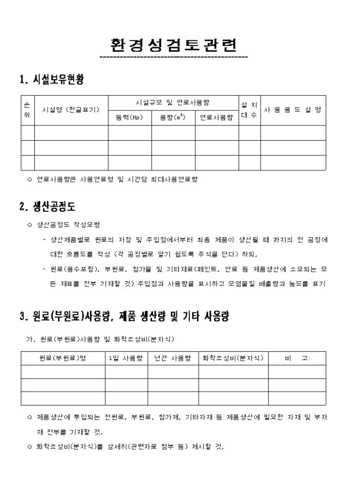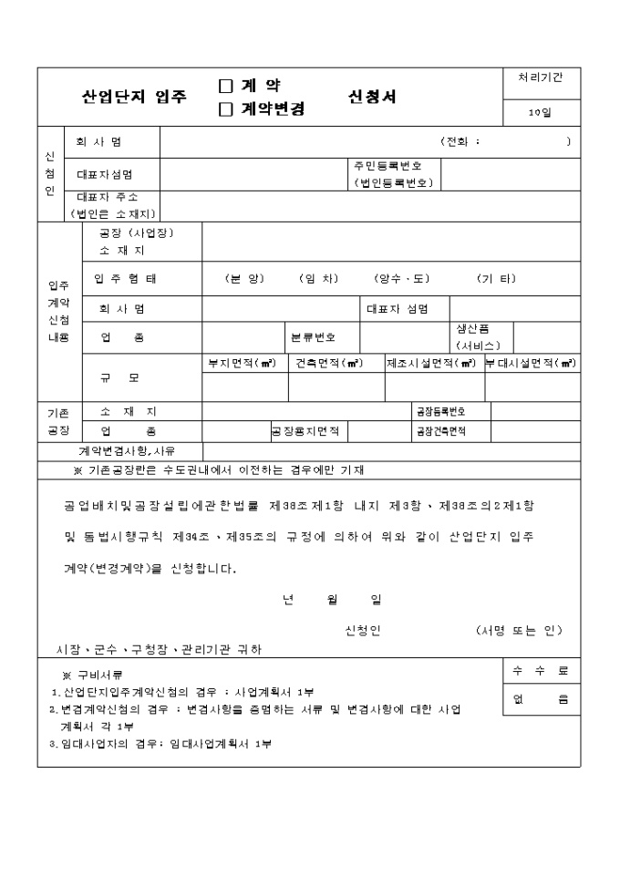 및 동법시행규칙 제34조ㆍ제35조의 규정에 의한 산업단지 입주 계약, 계약변경 신청서양식입니다. 사업계획서 양식과 환경성검토관련한 양식이 첨부되어 있습니다.