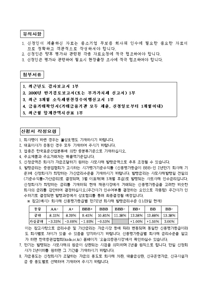 자금, 입지지원사업-중소기업 무보증회사채 인수신청서