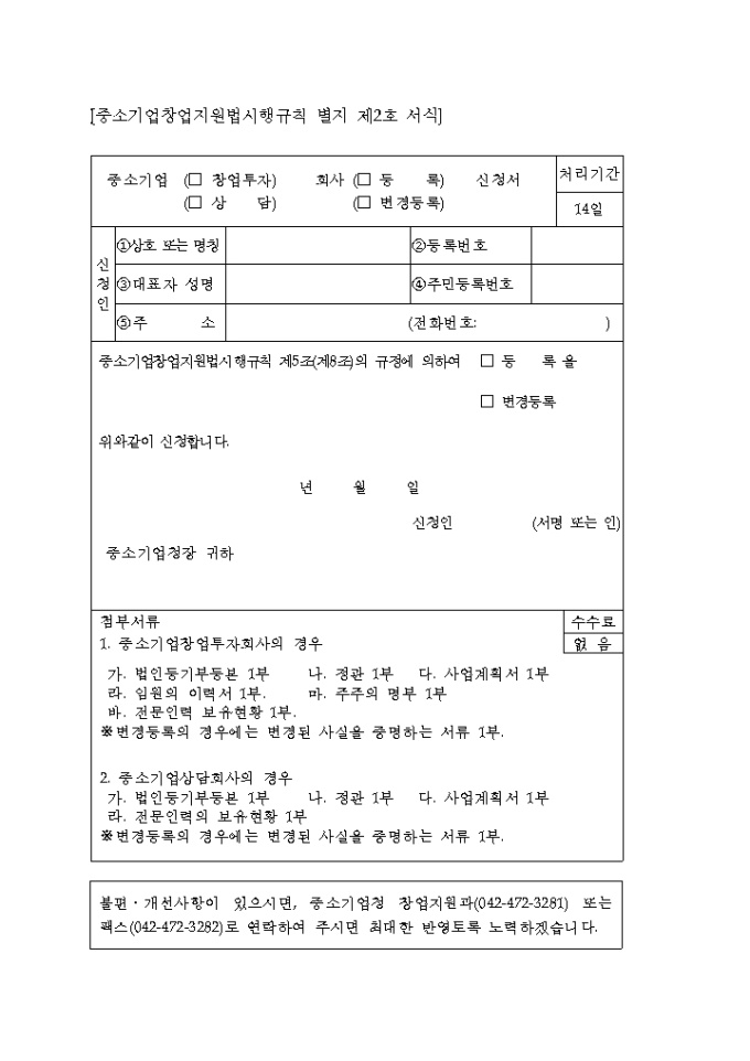 9,000원/월중소기업창업지원법시행규칙 별지 제2호 서식