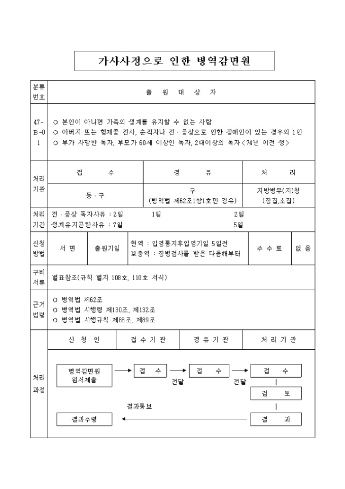 9,000원/월가사사정으로 인한 병역감면원 양식입니다.