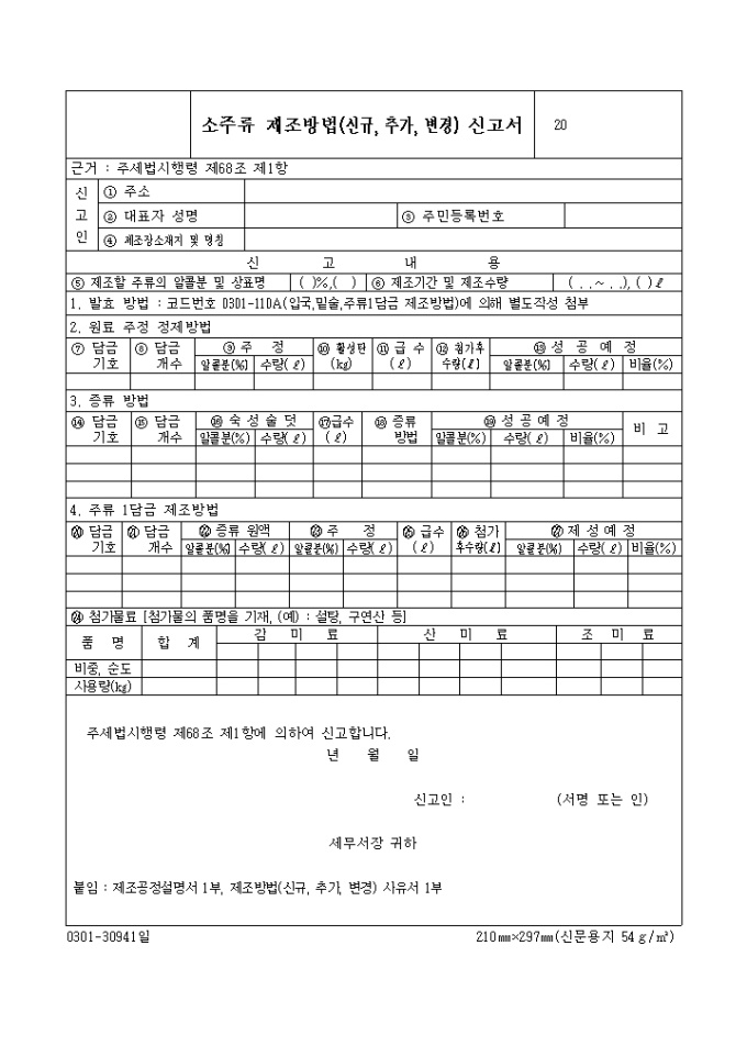 소주류제조방법(신규, 추가, 변경)신고서