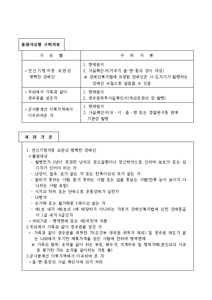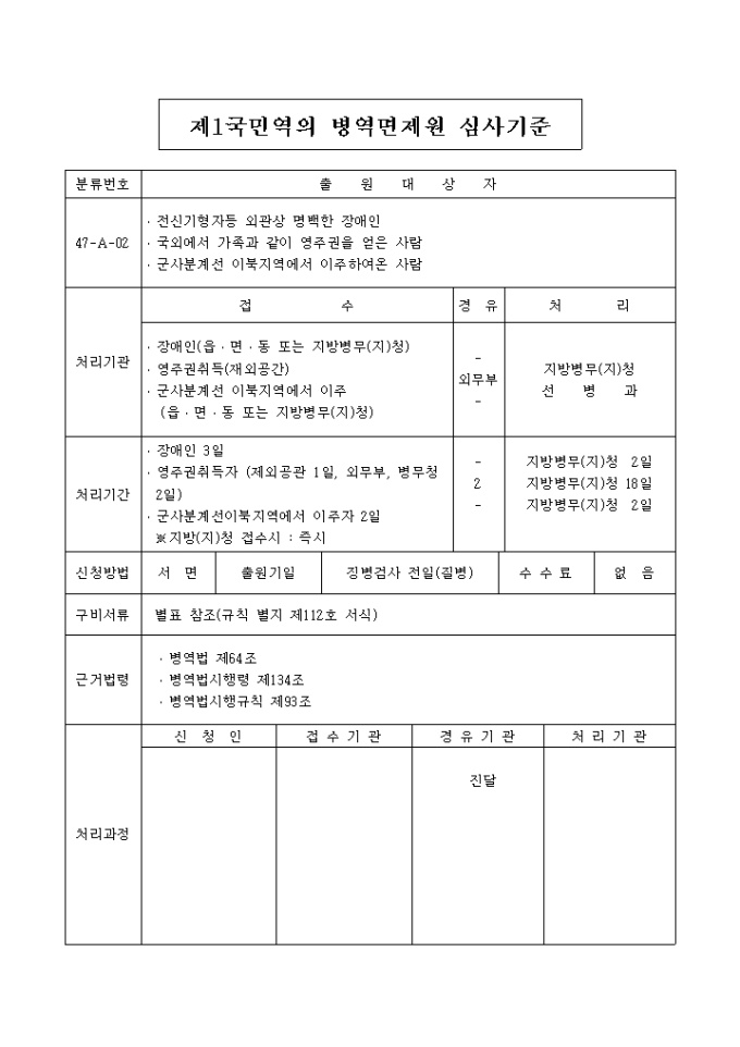 9,000원/월제1국민역의 병역면제원심사기준 양식입니다.