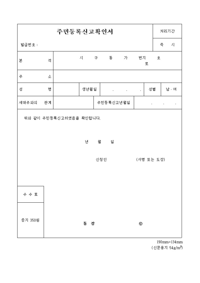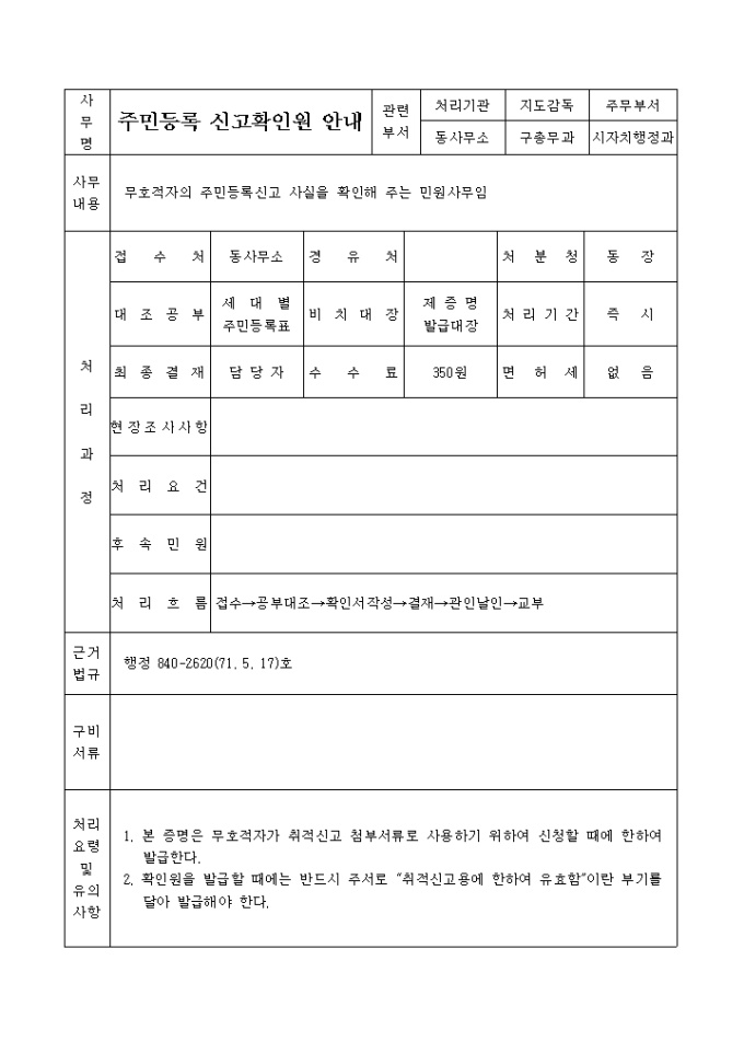9,000원/월무호적자의 주민등록신고 사실을 확인하고자 할 때 사용하는 주민등록신고 확인서 양식입니다.