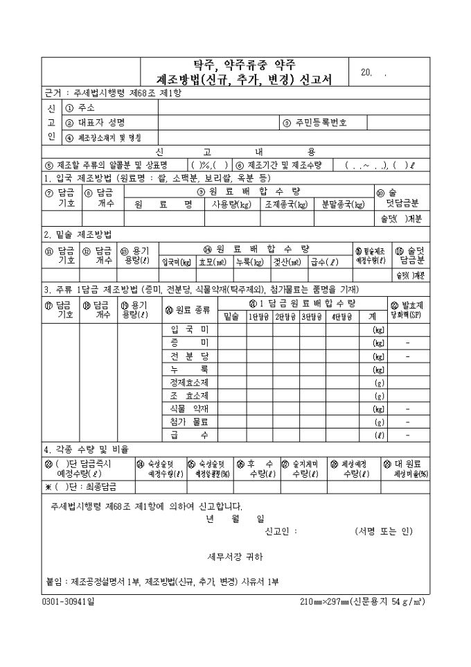 9,000원/월약주류중 청주제조방법(신규,추가,변경)신고서 양식 예제입니다.
