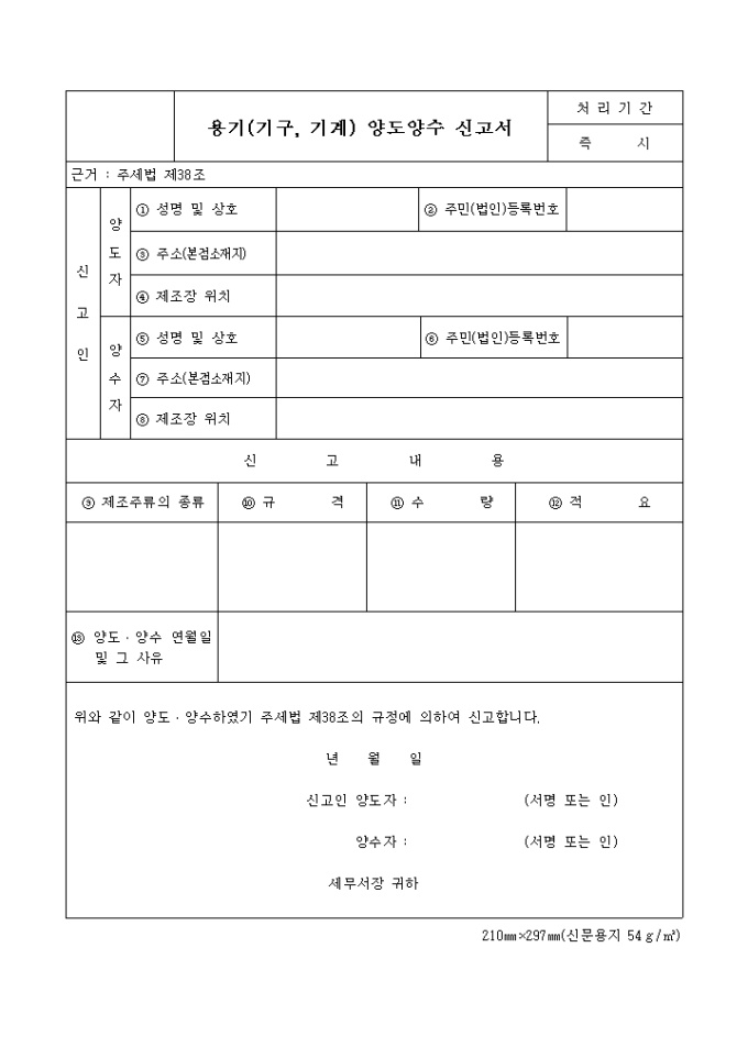 위와 같이 양도․양수하였기 주세법 제38조의 규정에 의하여 신고합니다.