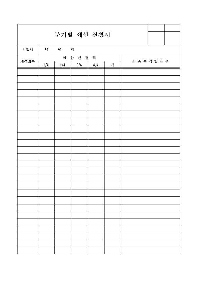 분기별 예산 신청서 양식입니다.