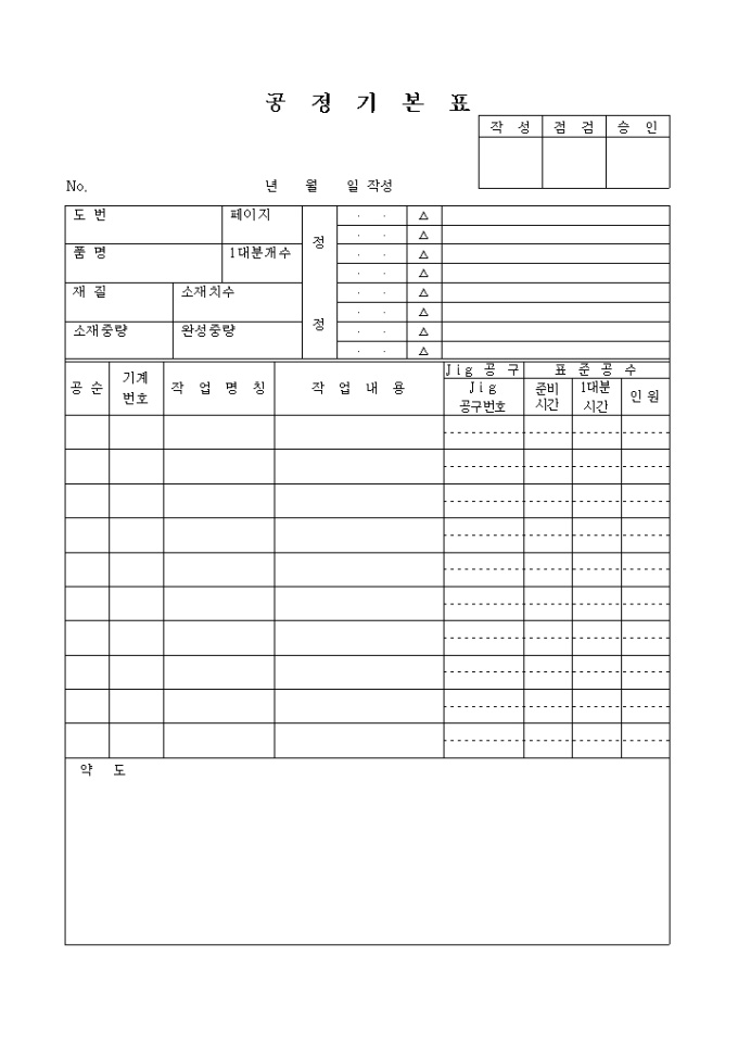 공정기본 양식입니다.