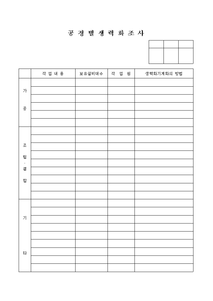공정별 생력화조사