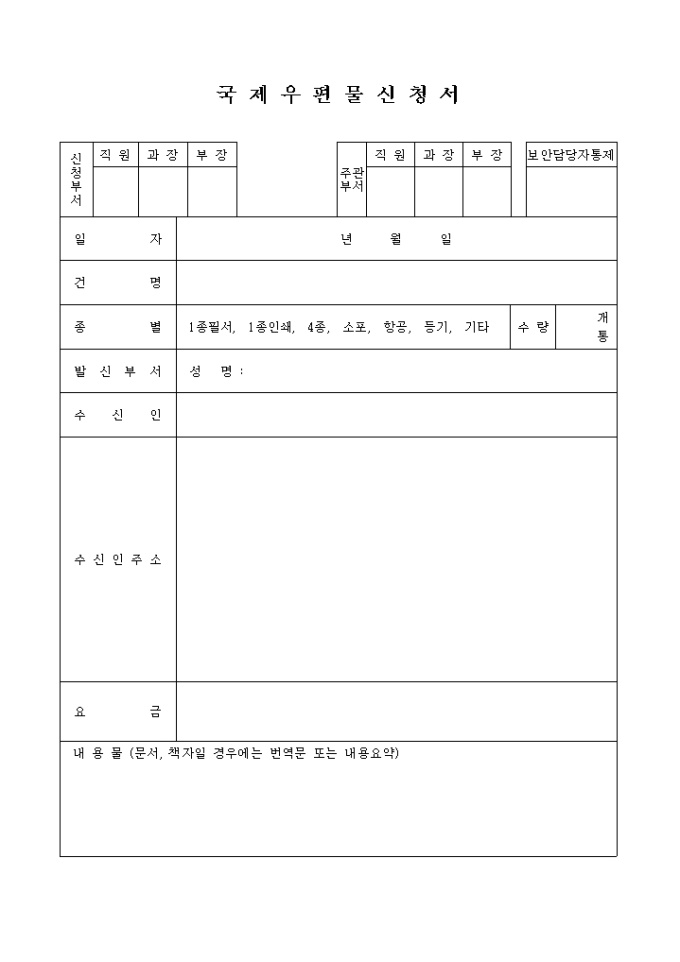 국제우편물 신청서