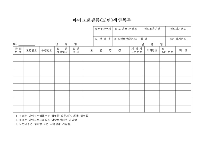 9,000원/월마이크로필름의 제작일자, 크기, 명칭, 기기번호 등을 기재하는 양식입니다.