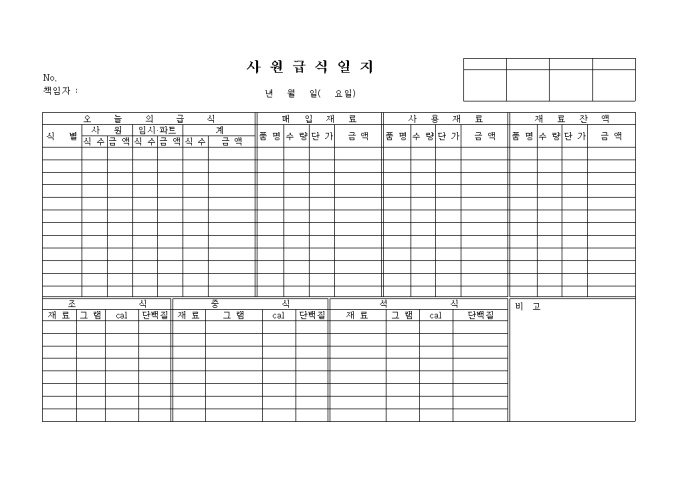 9,000원/월조식, 중식, 서식으로 재료, 그램, cal, 단백질량과 급식매입재료, 사용재료를 기재하는 양식입니다.