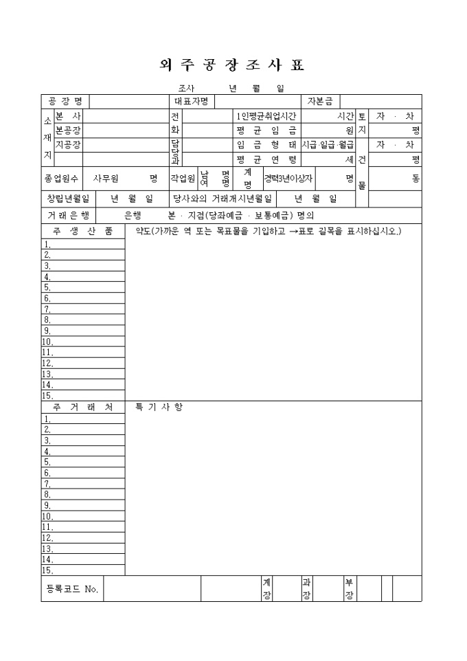 외주 공장 조사표