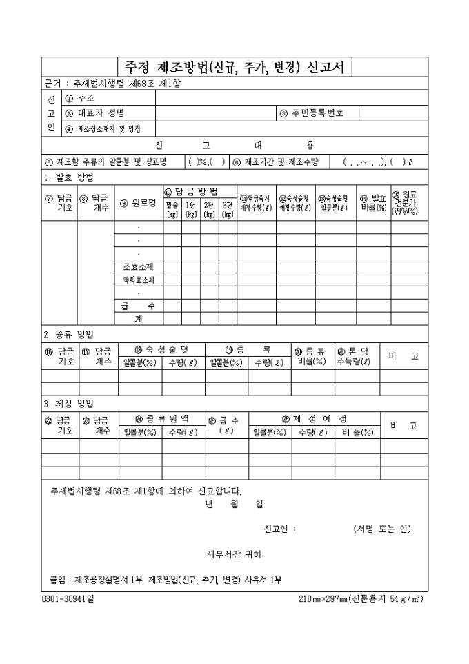 주정제조방법(신규, 추가, 변경)신고서