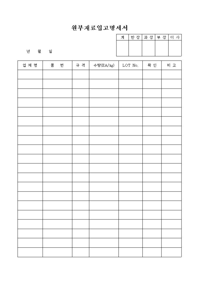 원부재료 입고 명세서