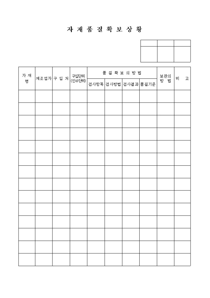 9,000원/월자재 품질 확보 방법과 보관의 방법을 기록하는 양식입니다