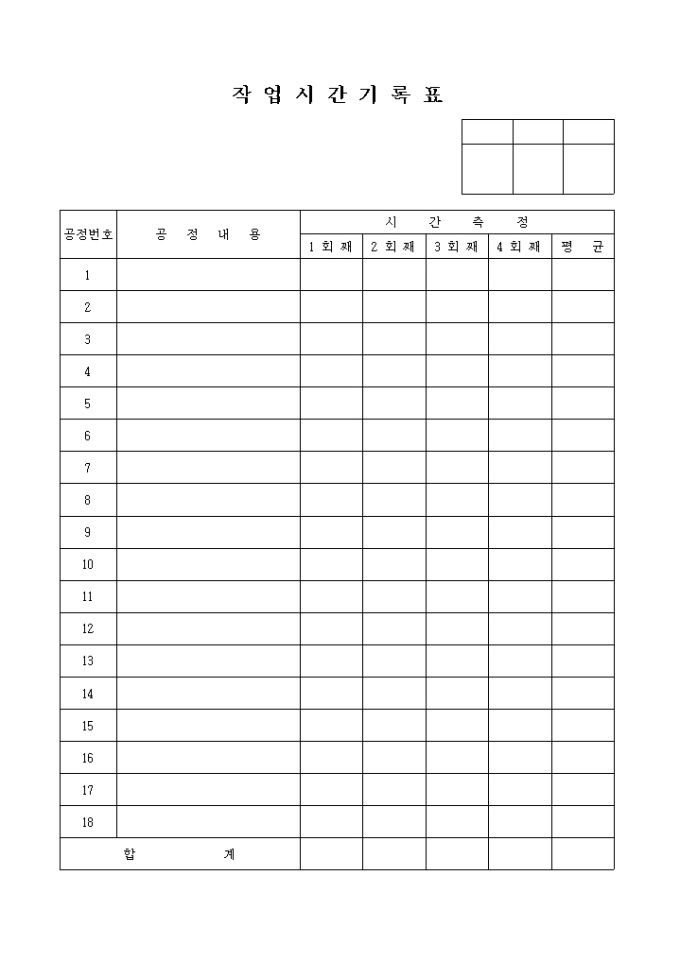 9,000원/월작업시간을 회별로 측정하여 기록하는 양식입니다.